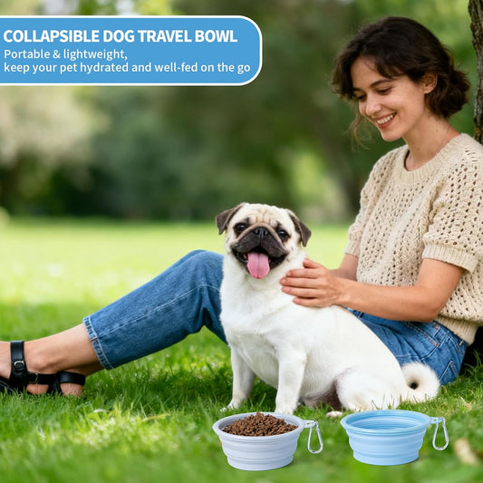 Collapsible Dog Bowl, 2Pack Macaron Color Pet Travel Bowls Silicone Foldable Water Feeder Dish for Small to Large Dogs Cat Walking Hiking Camping (Macaron Blue and Light Grey, Small)